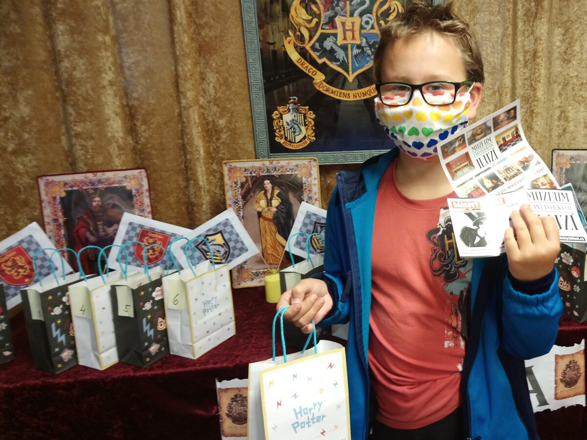Nocování v knihovně pod názvem „Noc s Andersenem“, na které jsme se těšili od jara, se nakonec nemohlo konat ani v náhradním, podzimním termínu. Tak jsme pro všechny přihlášené děti připravili náhradní program korespondenční formou. Dětem byly před plánovaným 9. říjnem odeslány tajemné obálky z bradavické školy, ve kterých se skrývaly domácí úkoly na téma Harry Potter. Vyplněné pracovní listy mohly přinést v následujících dnech do knihovny, kde je čekala odměna. V potterovsky laděném zákoutí knihovny na ně čekalo překvapení ve formě kouzelnické hůlky, jejíž pomocí si děti „vyčarovaly“ své číslo do tomboly. V té byla pro každého připravena dárková taštička s bradavickými laskominami-čokoládovou žabkou a Bertíkovými fazolkami, ozdobná placka se znakem jedné z bradavických kolejí a další drobná pozornost. A jelikož se téma letošního ročníku týkalo především kouzlení a magie, hlavní výhrou byly dvě rodinné vstupenky do Muzea fantastických iluzí!  Ty knihovně věnovala rodina Pavla Kožíška, za což jim mnohokrát děkuji. Přeji výhercům, aby si svou návštěvu muzea mohli co nejdříve užít a slibuji, že se v knihovně s Harry Potterem ještě letos potkáme  .