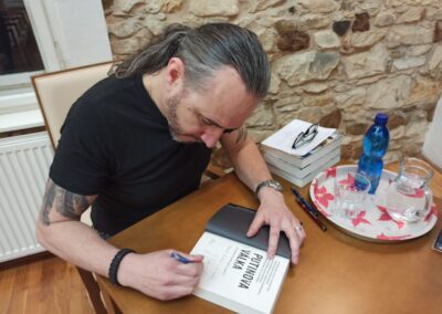 Ve velkém sále Chaberského dvora jsme ve čtvrtek 13. dubna 2023 uvítali novináře a zahraničního zpravodaje České televize, autora několika knih a držitele novinářské ceny Ferdinanda Peroutky Jakuba Szántó. Publiku představil nový knižní titul Putinova válka, na kterém se spolupodílel s kolegy reportéry ČT. Ukázky z knihy doprovázel poutavý popis práce novinářů ve válečných zónách. Návštěvníci měli na závěr možnost zakoupit si nejen tuto knižní novinku, ale i další autorovy tituly Za oponou války, která získala ocenění Magnesia Litera, a Z Izrastiny s láskou, které Jakub Szántó velmi ochotně všem podepisoval. Děkujeme všem za zájem.