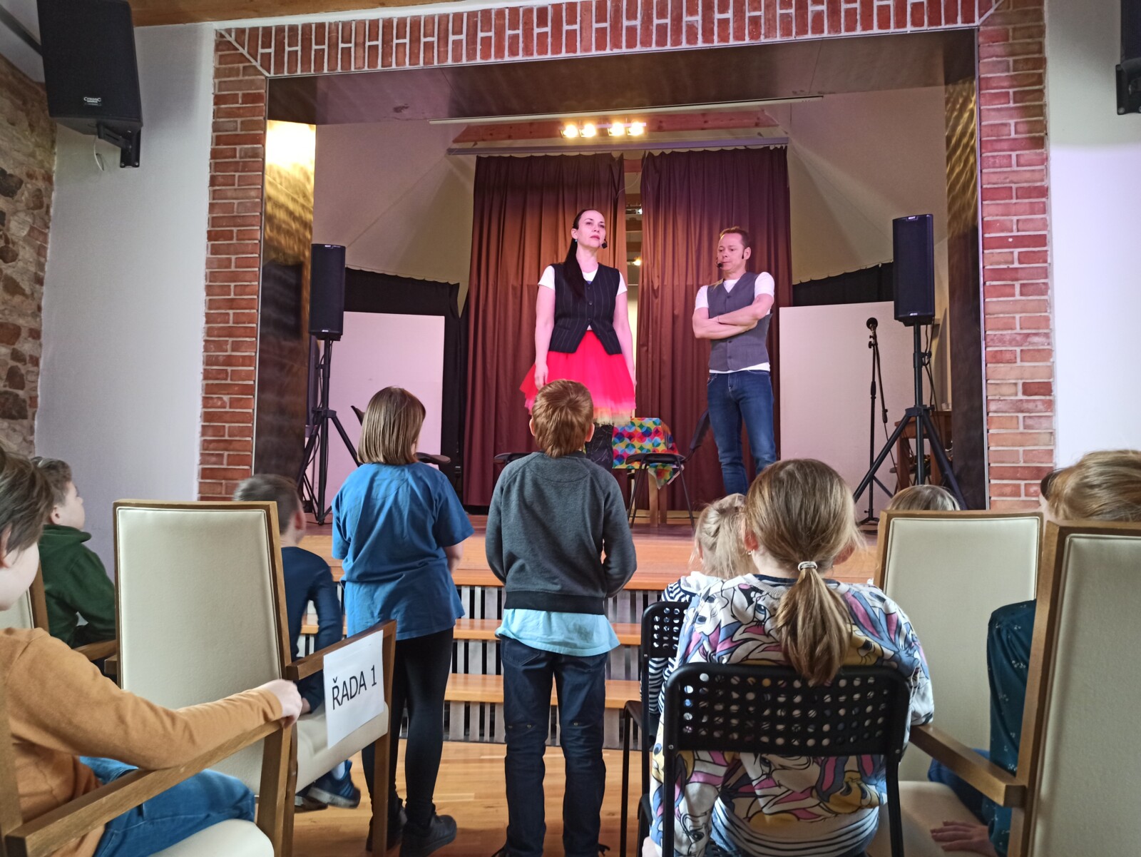 V páteční dopoledne 14. dubna jsme v Chaberském dvoře seznámili druháky a třeťáky se základy etikety. Ale pozor, nebyla to žádná nuda! Moderátorka Jana Rychterová její kolega ze stanice Českého rozhlasu Rádia Junior a děti bavili tak, až se sál otřásal smíchem, dobrou náladou a společným zpíváním. Snad jsme dětem přispěli k příjemnému zpestření školního „pyžamového“ dne.