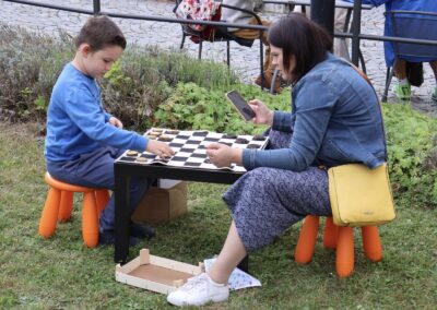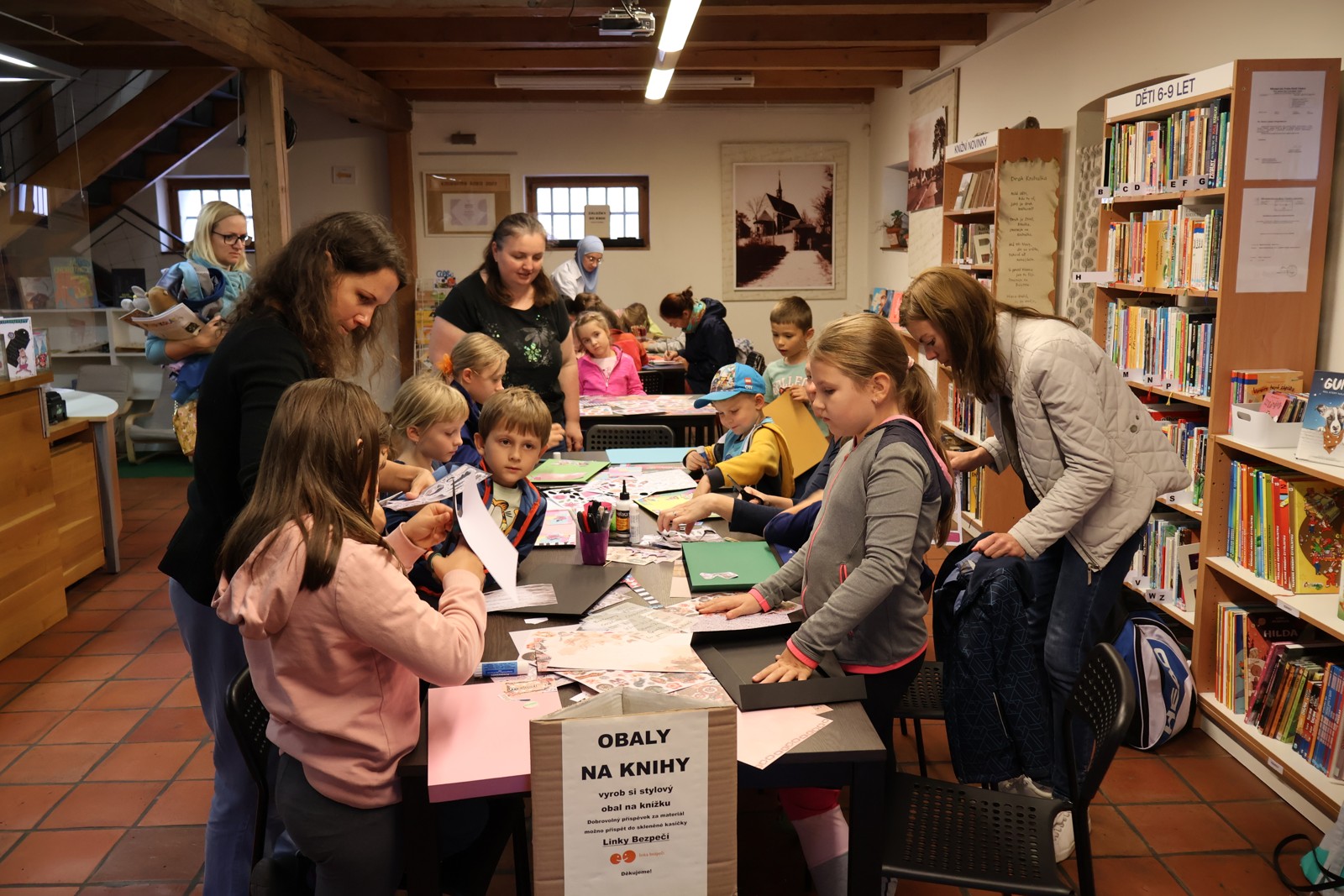 Dnem otevřených dveří jsme završili Týden knihoven 2023. Po marionetové pohádce Divadla Kozlík se venku soutěžilo se SpongeBobem a nakladatelstvím CREW, zpívalo se a tančilo s Janou Rychterovou, nákupem darovaných knih jste přispěli na provoz Linky bezpečí, s Luckou jste vyráběli krásné obaly a s Madinou knižní záložky. Obličeje dětem pomalovala na přání Martina z Ateliéru Markamilka. Nejmenší si vyzkoušeli motoriku na opičí dráze s Luckou ze Dvorečku a roztočením kola štěstí si děti vylosovaly drobnou odměnu. Taky se u nás jen tak četlo, na trávníku hrála dáma a deskovky a mlsaly se dobroty ze stánků. Ještě jedno velké díky našim pomocníkům na jednotlivých stanovištích z řad dětských čtenářů: Líze, Elišce, Arnice, Viki, Lauře, Anetce, Hynkovi a Mikulášovi. Byla radost s vámi všemi pobýt a vaše přízeň nás moc těší, děkujeme .