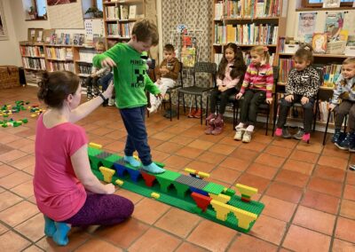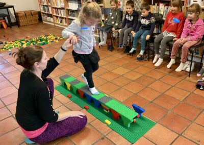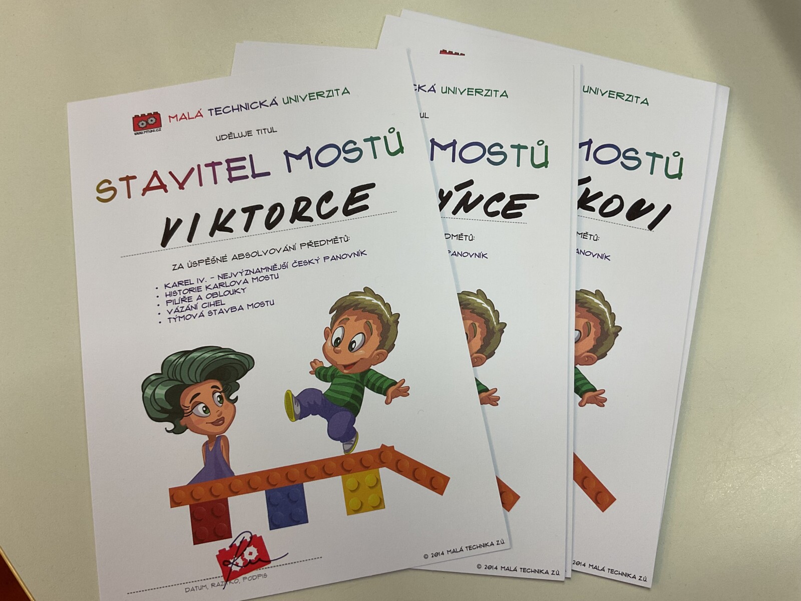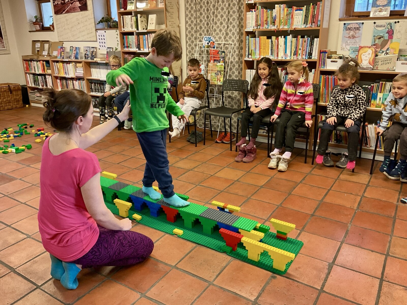 Díky metodickému oddělení MK Praha jsme v pátek 24. 11. v knihovně uvítali lektorku z organizace Malá technická univerzita, seznamující děti od nejútlejšího věku názorně a jednoduše s technikou. Dvě třídy z MŠ Bílenecké nám. si vyzkoušely program „stavitelé mostů“. Dozvěděly se, kdo byl Karel IV., jaké slavné památky díky němu v Čechách máme a také jaká tajná ingredience byla přidávána do malty při stavbě Karlova mostu. Děti zjistily k čemu slouží pilíře a pak se pustily do jejich stavění. Po důkladném prostudování návodu se jim to dařilo dokonale! Postavený most si pak všechny náležitě vyzkoušely. O kvalitě nebylo pochyb, most zátěžovou zkoušku ustál 😉. Doufáme, že se podařilo vzbudit v dětech ještě větší zvídavost, jak svět vlastně funguje.