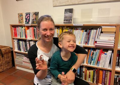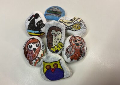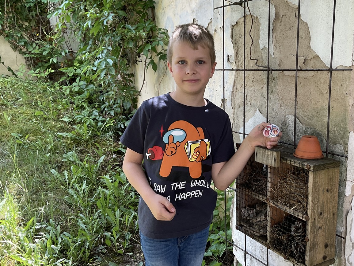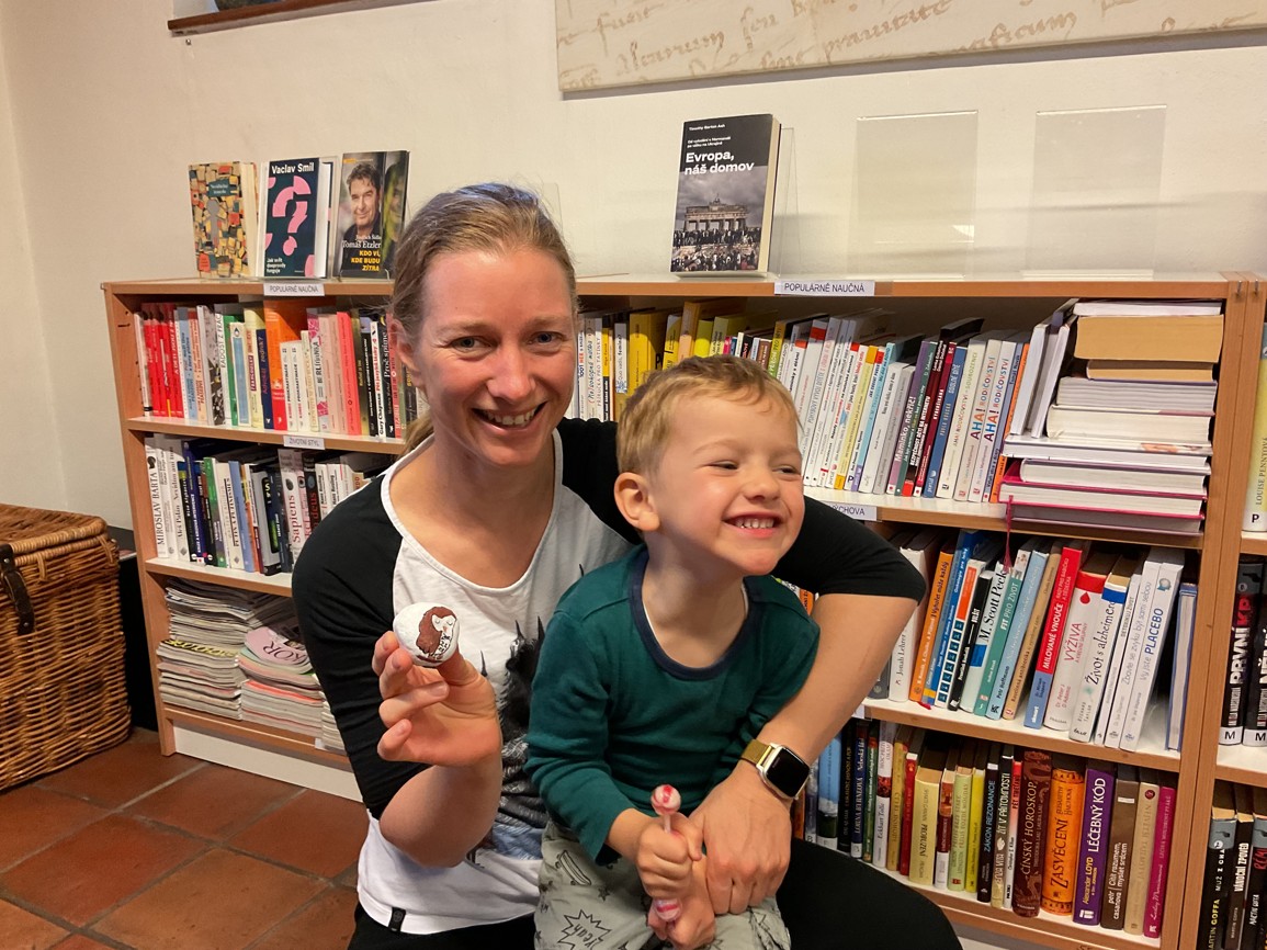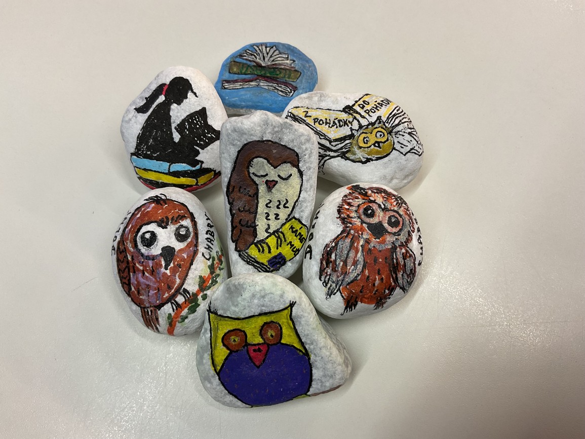 Hned v začátku venkovní kamínkové hry dorazili rychlí nálezci se svými úlovky. Úplně první zaregistrovali čísla svých kamínkových nalezenců a získali díky tomu drobnou odměnu: Ema, Matěj, Kačenka a Elenka a mnoho dalších. Hra spočívající v hledání pomalovaných kamínků roznesených na viditelná místa v Chabrech vylákala do terénu jak děti samotné, tak rodinné týmy. Ačkoli se jich do knihovny nevrátilo všech osmdesát po Dolních Chabrech rozmístěných, věříme, že i náhodným nálezcům udělaly krásně pomalované kamínky radost! Moc nás potěšil zájem o jejich malování i hledání z řad dětí i dospělých.
