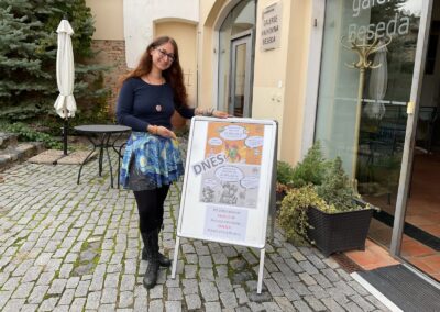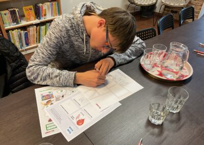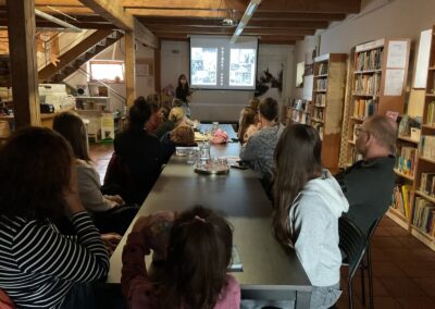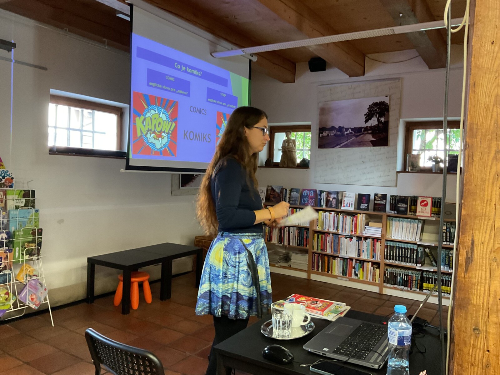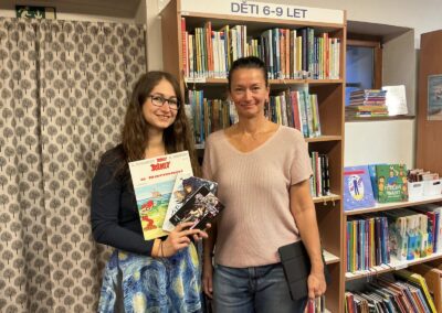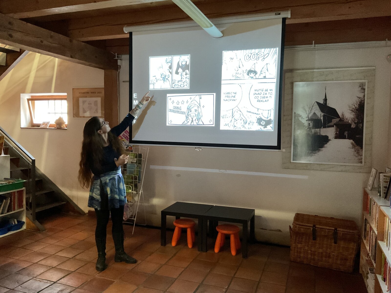 Druhá dvouhodinovka patřila starším zájemcům o japonskou MANGU. Poslechli jsme si povídání o tom, co inspirovalo její vznik a kdy to bylo, kdo byli první autoři, jak se má MANGA správně číst i na jaké novinky z CREW nakladatelství se můžeme v brzké době těšit. A jelikož naše knihovna disponuje mnoha zmiňovanými tituly, hned po skončení jsme do knihovny zaregistrovali několik nových, workshopem inspirovaných čtenářů a zájemců o jejich vypůjčení.