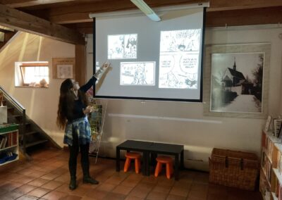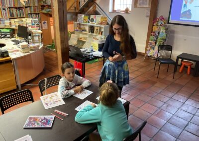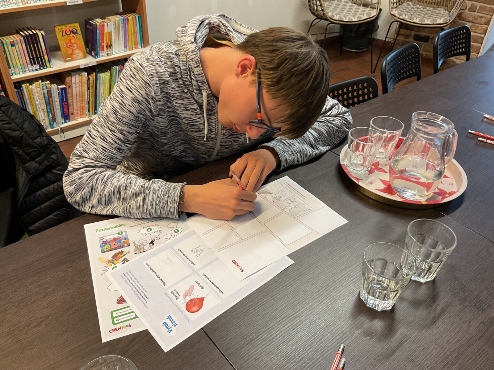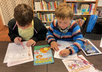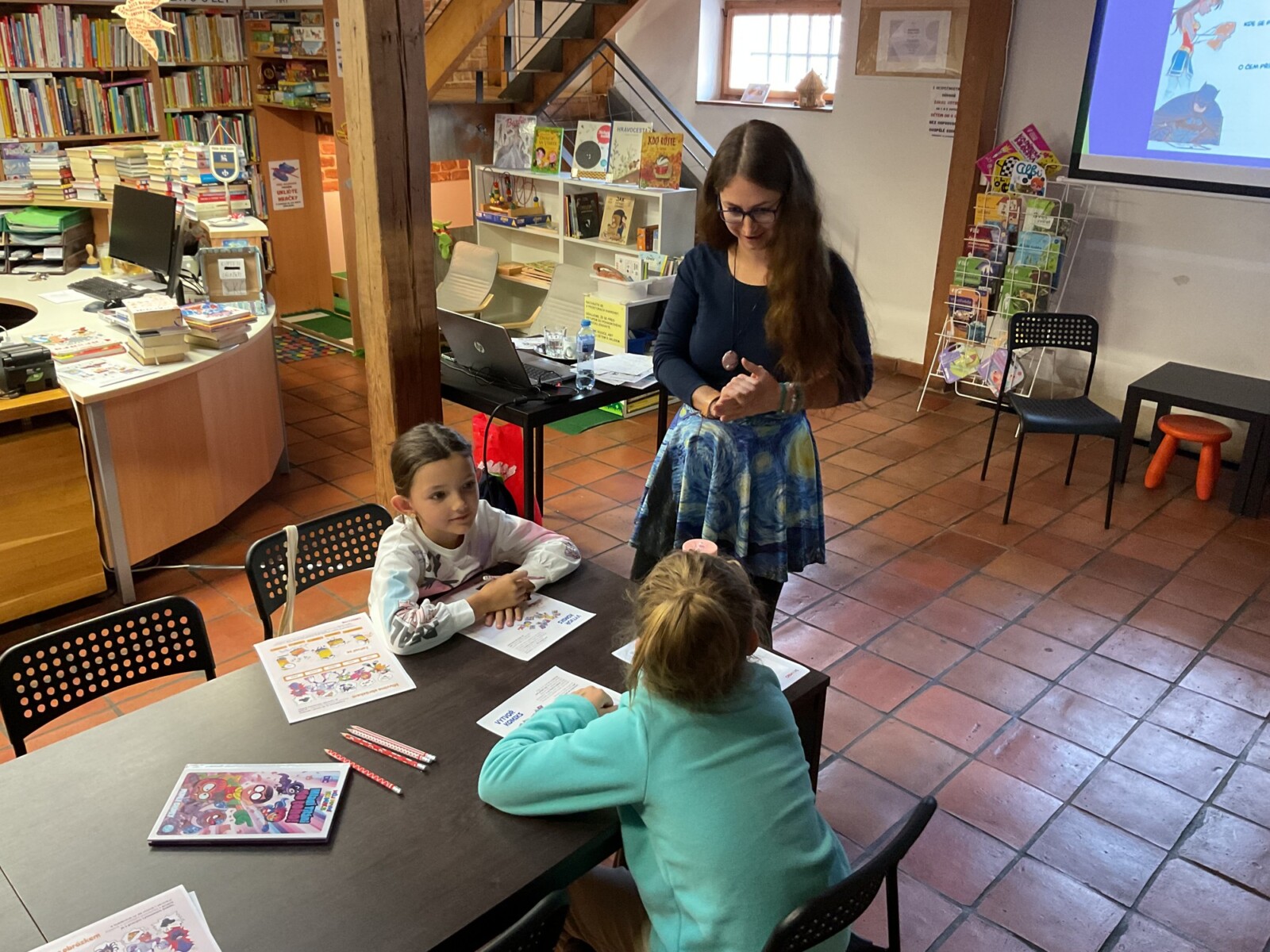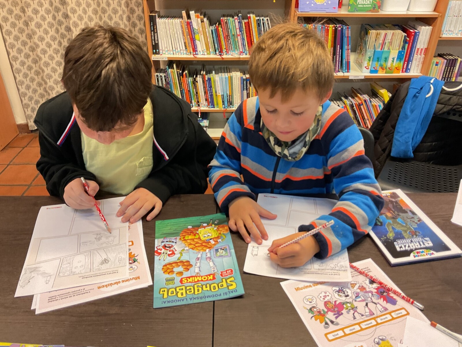 Týden knihoven jsme zakončili v sobotu 12. 10. báječným odpolednem v knihovně. Pozvali jsme lektorku Janu Rodovou z projektu Leksikon nakladatelství CREW. Nejdřív jsme spolu s ní uvítali malé nadšence do komiksu. Skupina dětí i dospělých se zábavnou formou dozvěděla zákonitosti komiksu, jak se liší bubliny, jak nakreslit zvuk a mnoho dalších zajímavostí. Na závěr si každý účastník namaloval svůj vlastní komiksový příběh.