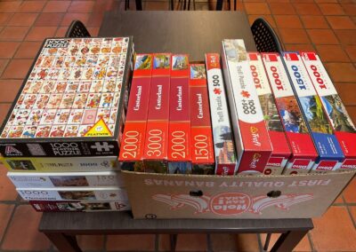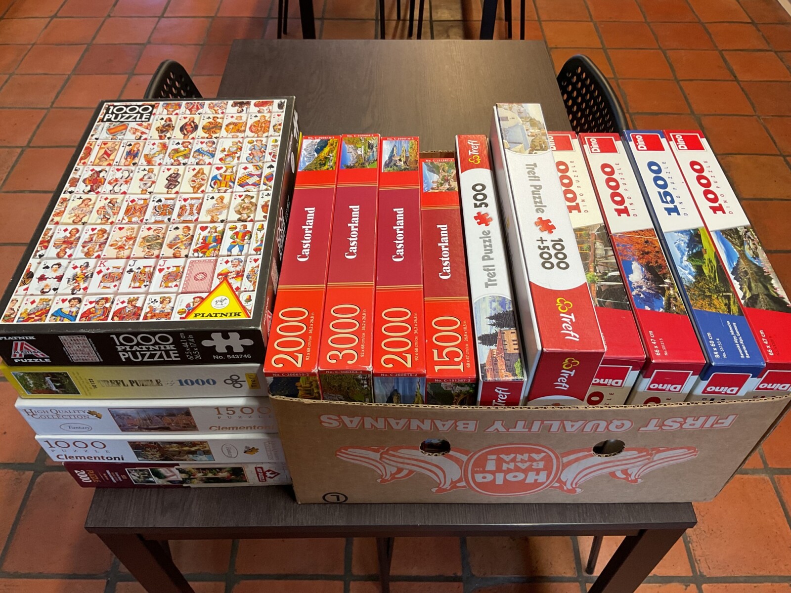 Co jsme vám nabídli? Sedm banánovek zajímavých titulů pro děti i dospělé nebo hromadu krabic se super puzzle skládankami. To vše jste knihovně v průběhu roku darovali a my jsme poté využili pro dobrou věc. Veškerý výtěžek byl vkládám přímo do zapečetěné kasičky Linky bezpečí. Spolupráce s touto organizací probíhá v knihovně s oboustrannou radostí již druhým rokem.