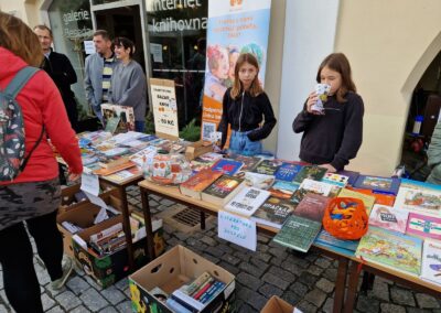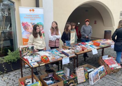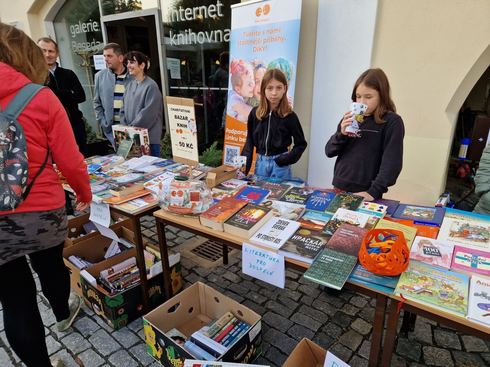 Do zábavného odpoledne 19. 10. jsme se zapojili bazarem darovaných knih. Zastavit jste se mohli před knihovnou a nakoupit knihy „jako nové“ za jednotnou cenu 50 Kč.