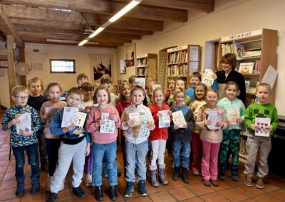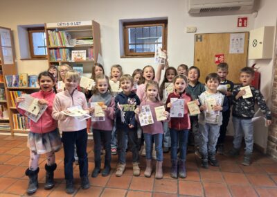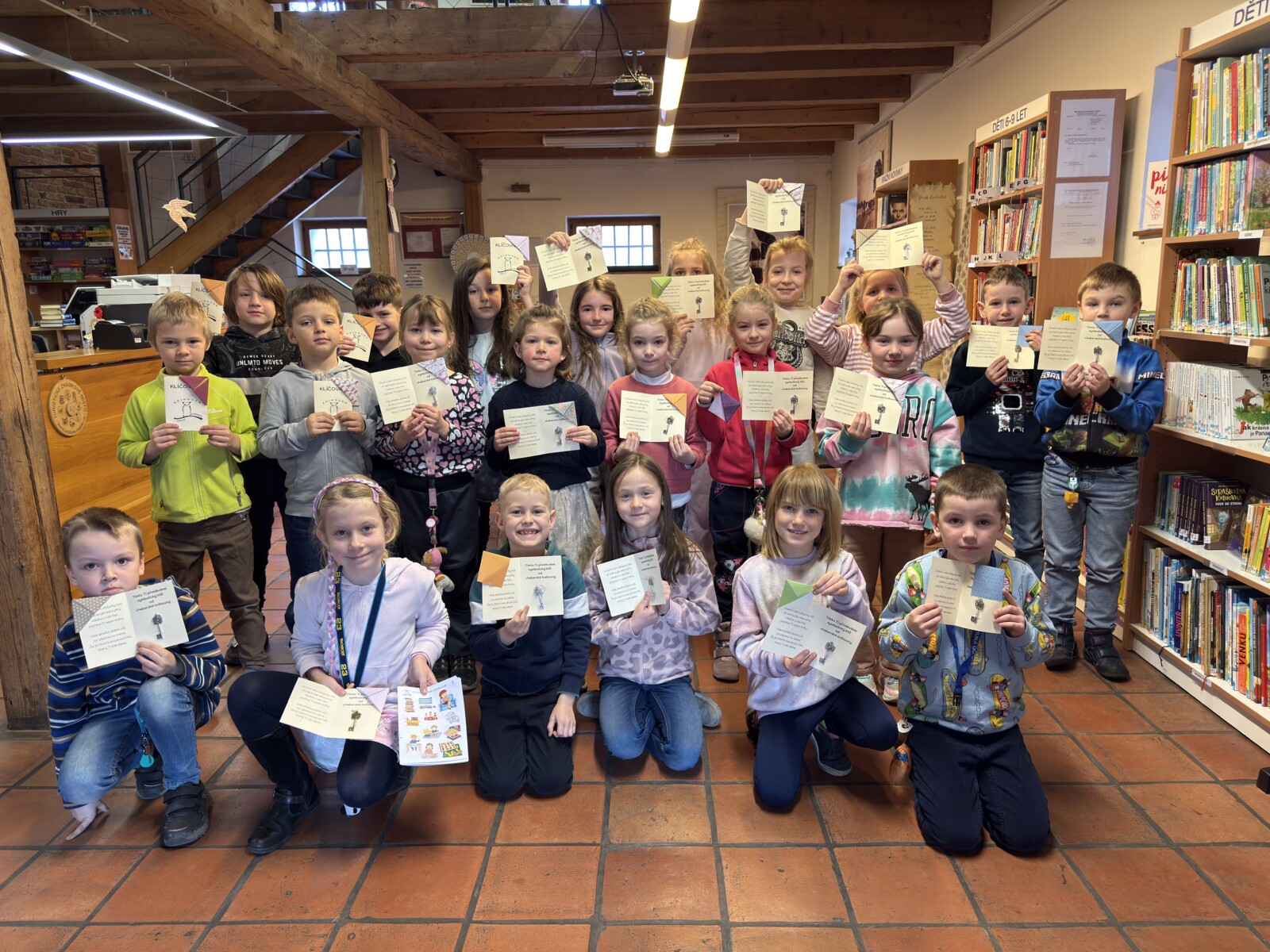 Jako každoročně jsme v březnu-měsíci čtenářů v knihovně nezaháleli. Na uvítacích lekcích o knihovně a knížkách se postupně vystřídaly všechny čtyři třídy chaberských prvňáčků, kteří za své vědomosti a snažení získaly symbolický klíč od knihovny. Klíč, který jim bude připomínat, že knihovna a celý její obsah je zde pro ně k dispozici. Máme radost, že většina prvňáčků již knihovnu někdy navštívila a jsou mezi nimi i pravidelní čtenáři a účastníci našich soutěží.