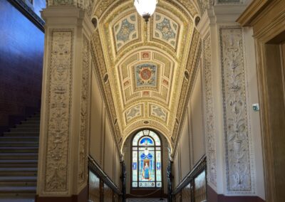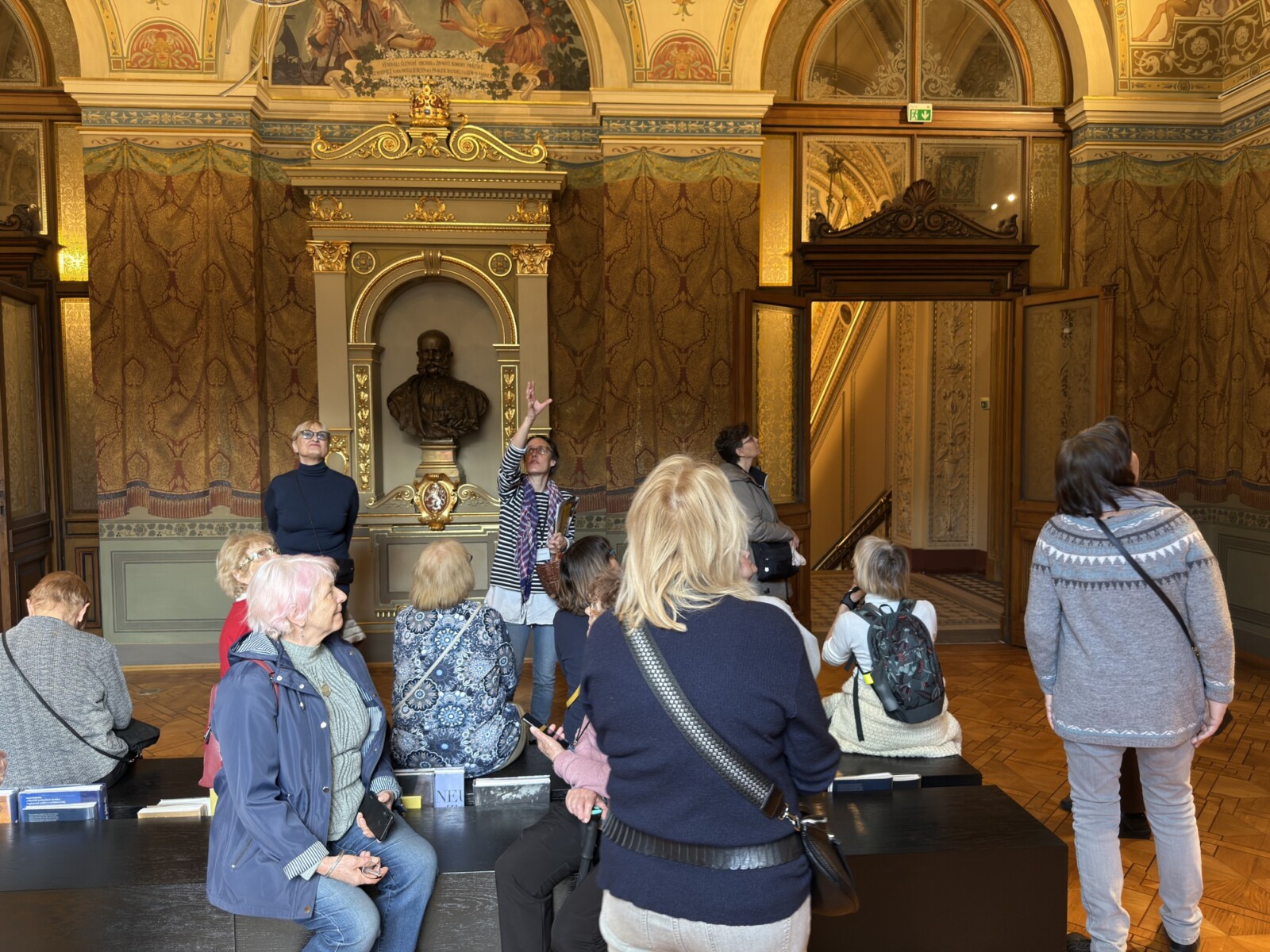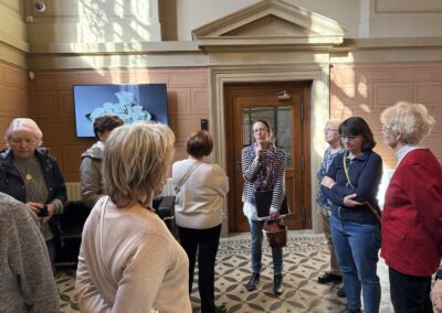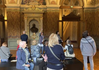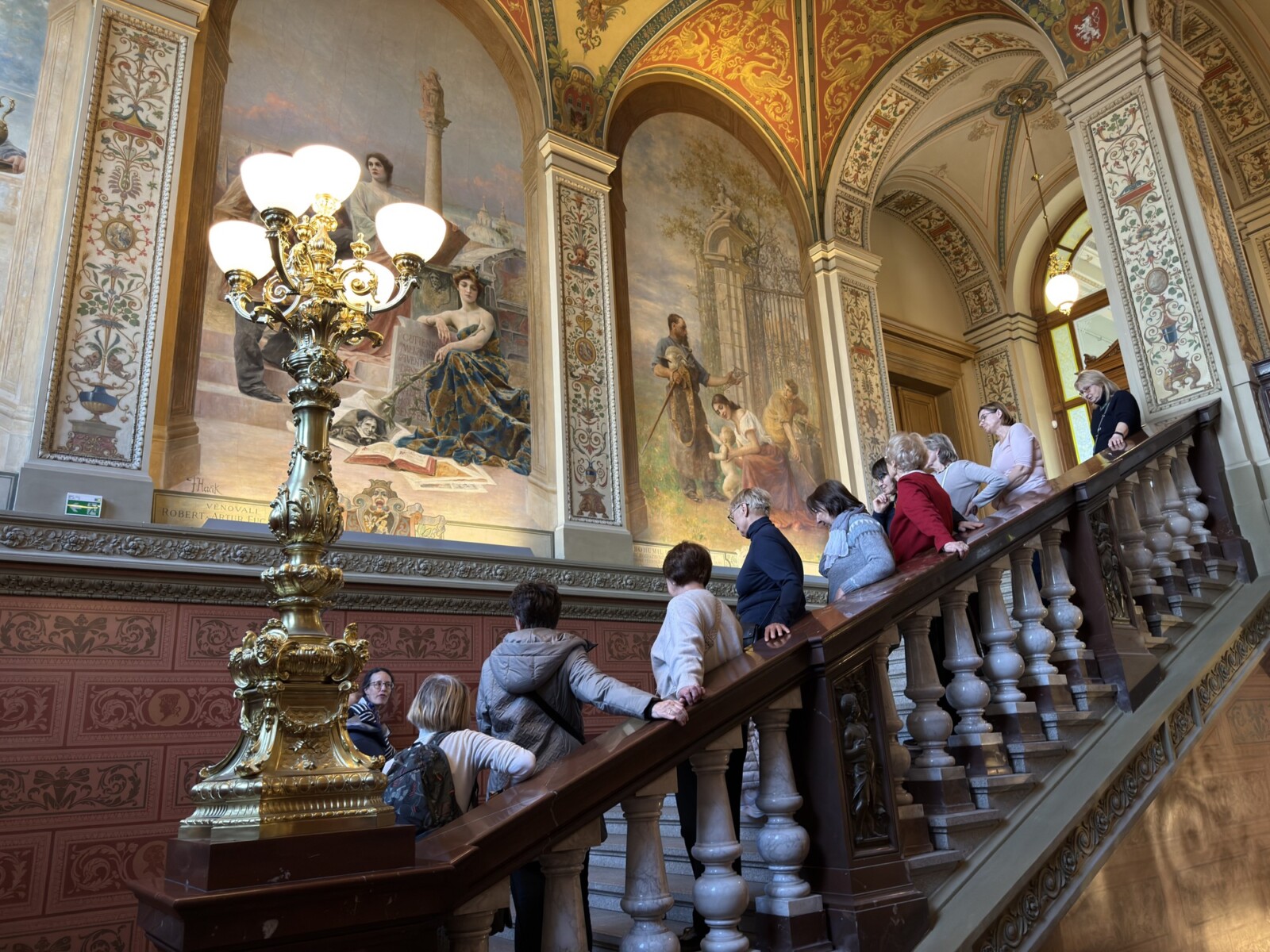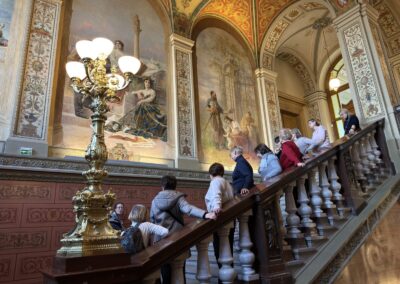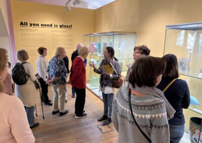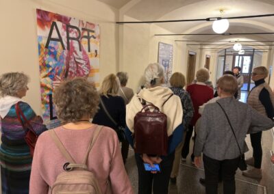 V dubnu jsme uskutečnili plánovanou komentovanou prohlídku Uměleckoprůmyslového muzea v Praze. S průvodkyní muzea Kristinou Václavů jsme si prohlédli výzdobu historických interiérů, služební prostory s působivým točitým schodištěm nebo votivní sál a dozvěděli se informace o iniciátorech a mecenáších jeho výstavby. Poté jsme mohli nahlédnout do muzejní knihovny se studovnou, navštívit aktuální bezplatné výstavy L’identité a spatřit díla Toyen nebo A. Šimotové. Dále byla ke zhlédnutí komorní výstava All You Need Is Glass! představující kurátorský výběr skleněných objektů z dílen např. J. Róny nebo M. Janeckého, mistrů svého řemesla.