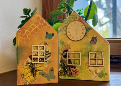V KC proběhl ve čtvrtek 8. dubna jarní workshop-zdobení dřevěných domečků. Jejich pestrou fotogalerii nabízíme ke zhlédnutí níže. Doufáme, že budou dělat doma radost!