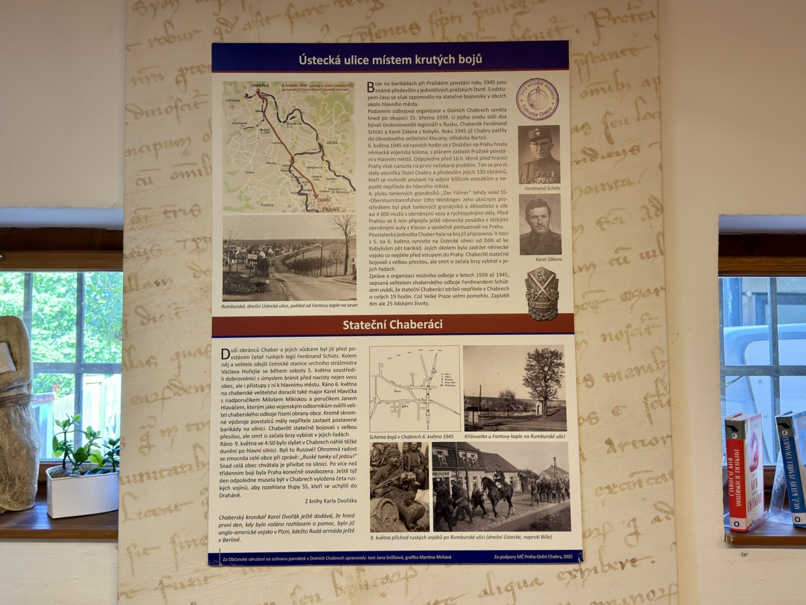 Knihu Hrdinové Dolních Chaber: vzpomínky místních občanů na válečné roky 1939-1945 můžete nyní zakoupit v KC/knihovně. Cena je 400 Kč a zaplatit lze hotově nebo kartou. Ke knize se váže poutavá panelová výstava, připomínající významné chaberské osobnosti, zapojené do protiválečného odboje a popisující bouřlivé dny květnového povstání v r. 1945. Autorkami výstavy a publikace jsou Jana Snížková, Hana Francová a Martina Mrňavá. Zhlédnout ji lze v přízemí a v 1. patře knihovny do konce června.