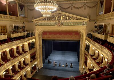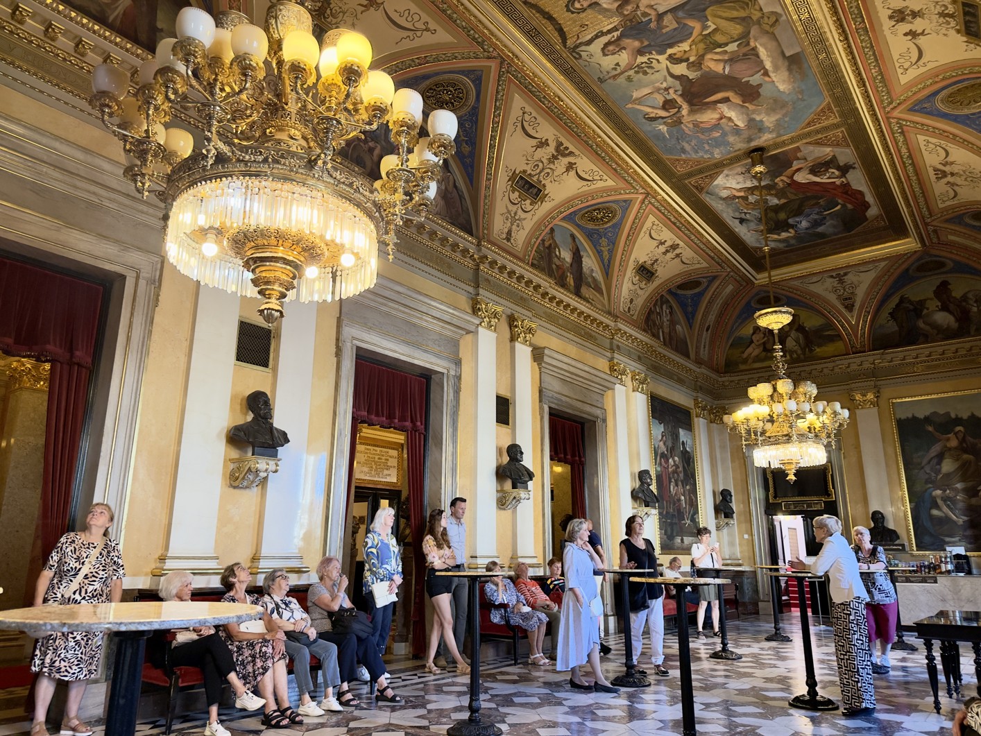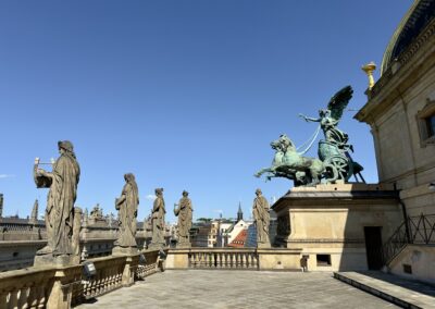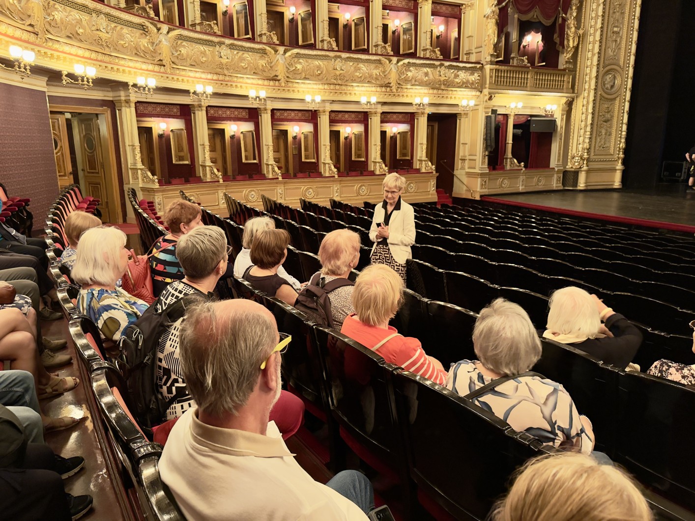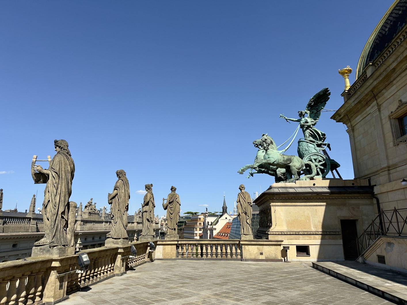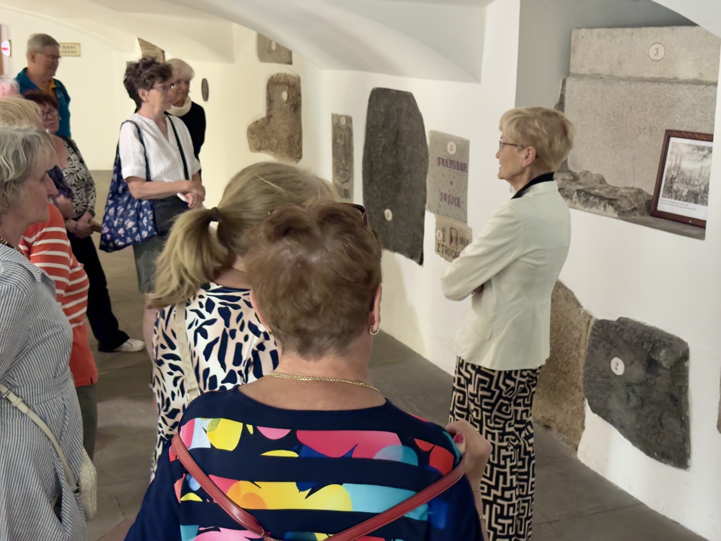 Na komentovanou prohlídku Zlaté kapličky jsme se vydali společně s dvaceti zájemci koncem června. Výklad erudované průvodkyně v těchto mimořádných prostorách jsme vyslechli se zatajeným dechem. Pozornost všech upoutaly prostory, do kterých se návštěvník běžně nepodívá, např. k základním kamenům nebo na nejvyšší veřejně přístupný bod ND terasu se sousoším Trig s výhledem na Pražský hrad. Spokojenosti účastníků komentovaných vycházek si velmi vážíme a s potěšením je zařadíme i do podzimního programu Kulturního centra.