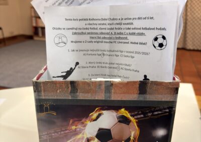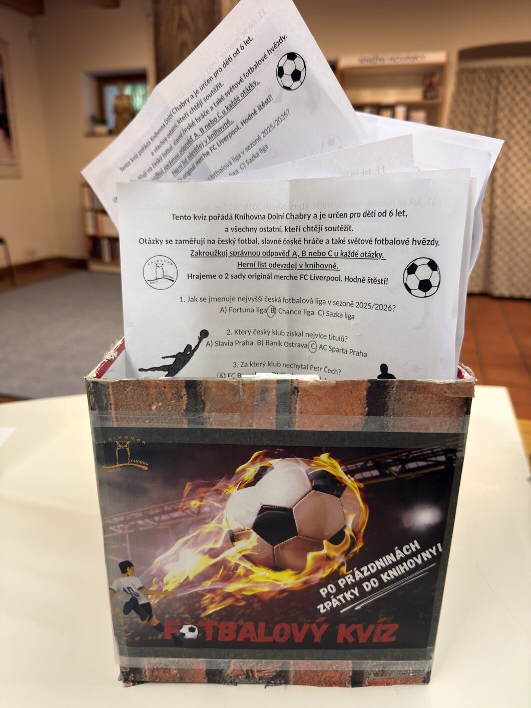 Celkem 32 vyplněných listů zářijového fotbalového kvízu jsme obdrželi od malých fanoušků a fanynek fotbalu. Máme radost, že si děti pomáhaly s vyhledáváním správných odpovědí i navzájem, a to přímo v knihovně. A většina z nich byla naprosto bezchybná! To je důkaz, že v Chabrech jsou i děti školou povinné velcí fotbaloví nadšenci. Z odevzdaných herních listů nám nejmenší dětičky na Dvorečku vylosovaly 3 výherce věcných cen, které jsme následně předali. Odměnu si odnesli Štěpán, Tudor a Matěj. Gratulujeme a děkujeme za účast.