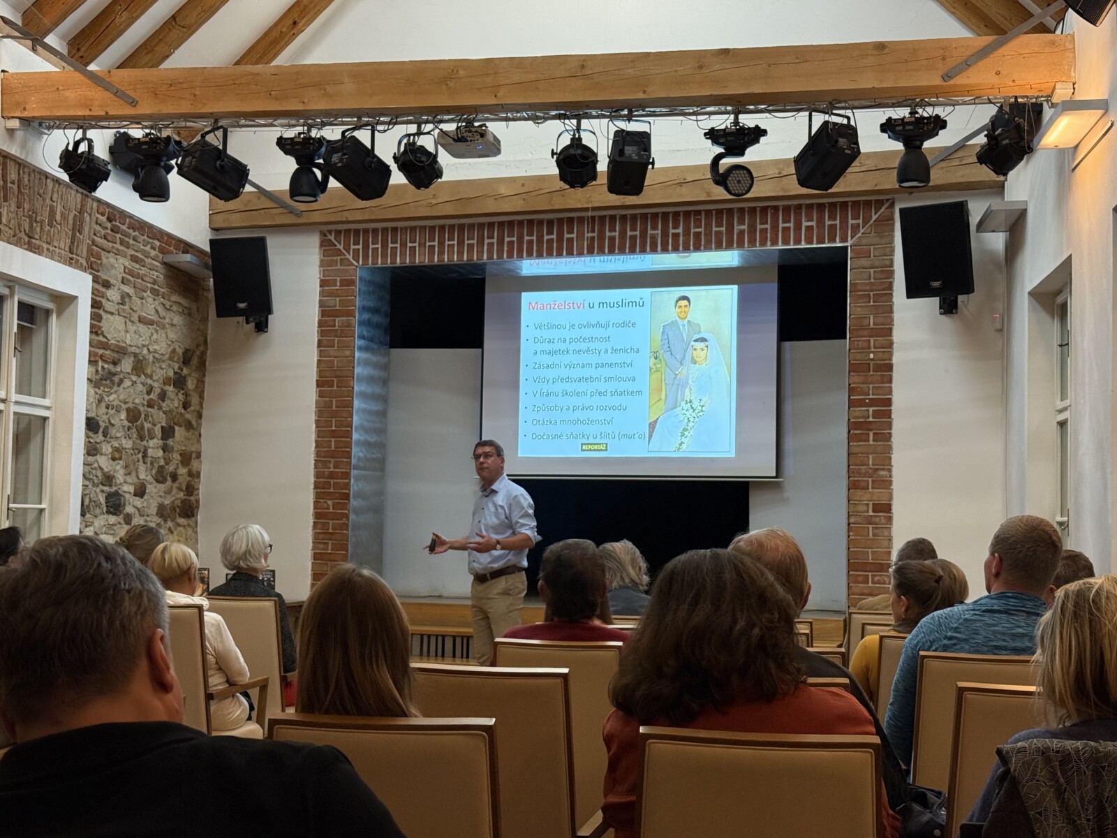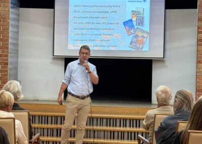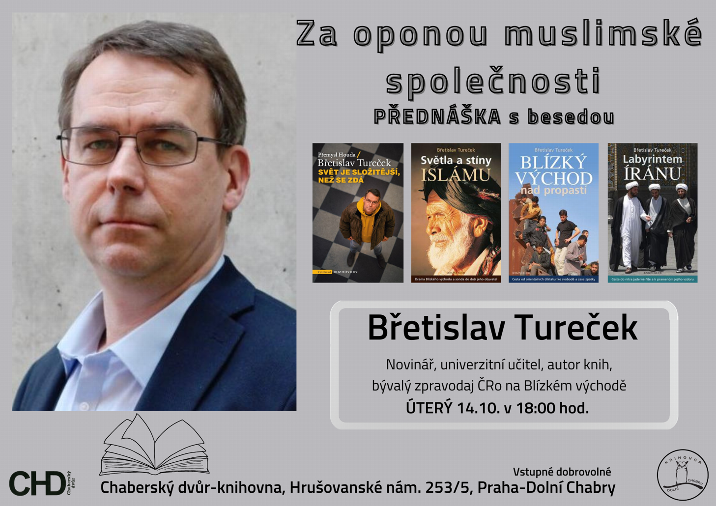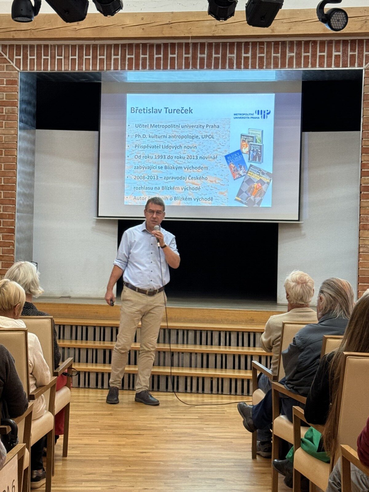 Další setkání z cyklu oblíbených novinářských besed se odehrálo v polovině října. V čem se liší uspořádání rodiny a společnosti na Blízkém východě oproti tomu, co známe ve střední Evropě? Jakou roli v tom hraje náboženství a jakou například kmenové tradice? Novinář a univerzitní učitel Břetislav Tureček strávil v muslimském světě řadu let, působil tam mj. jako stálý zpravodaj Českého rozhlasu a napsal o Blízkém východě několik knih. V rámci přednášky se podělil o unikátní zkušenosti, které umožňují lépe pochopit, co se odehrává v zákulisí neklidné části světa přímo na prahu Evropy. Děkujeme za zájem, který předčil naše očekávání a došlo tak k přesunu přednášky z knihovny do velkého sálu.