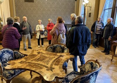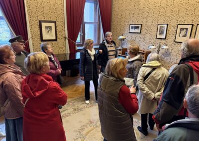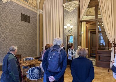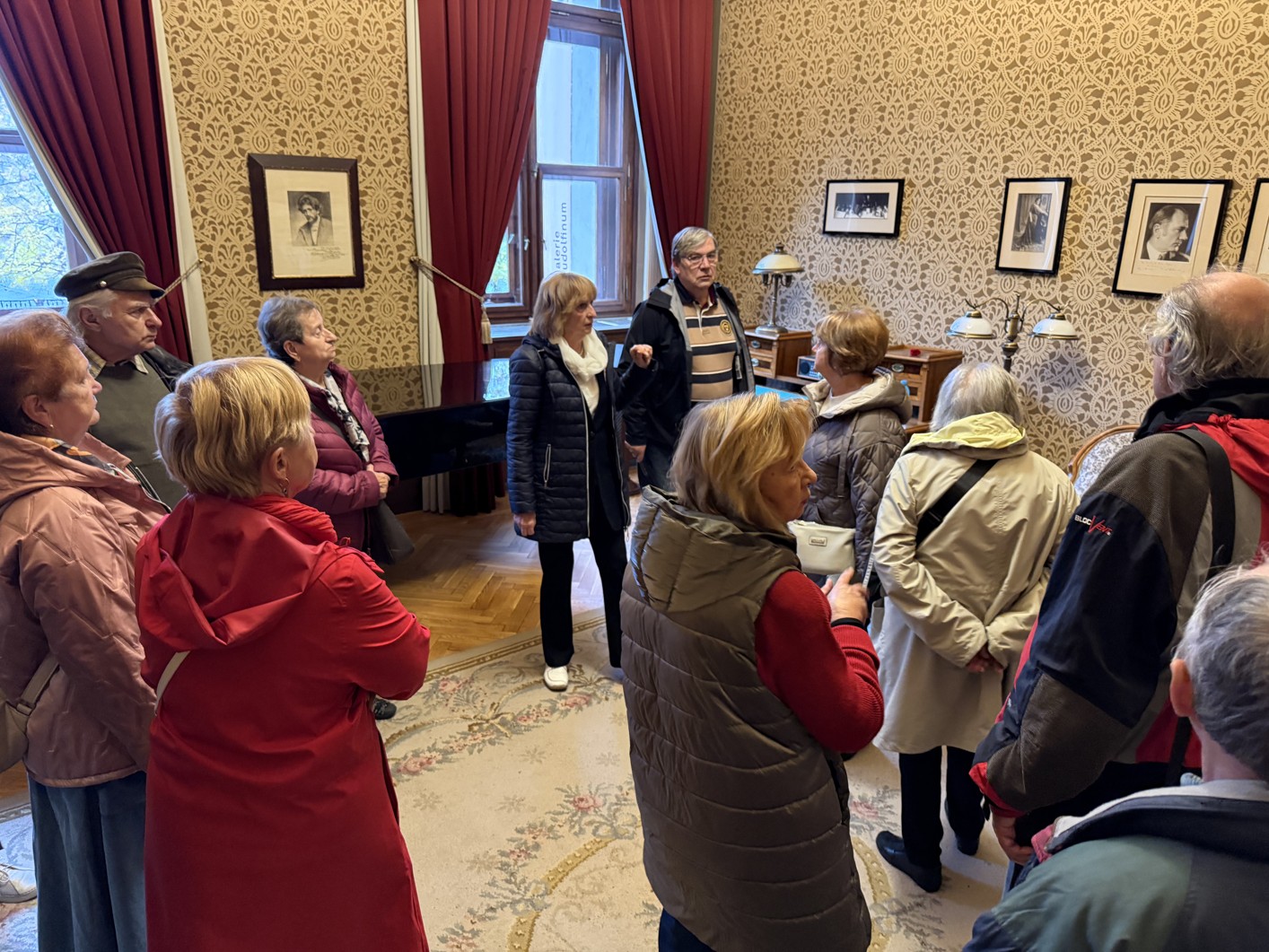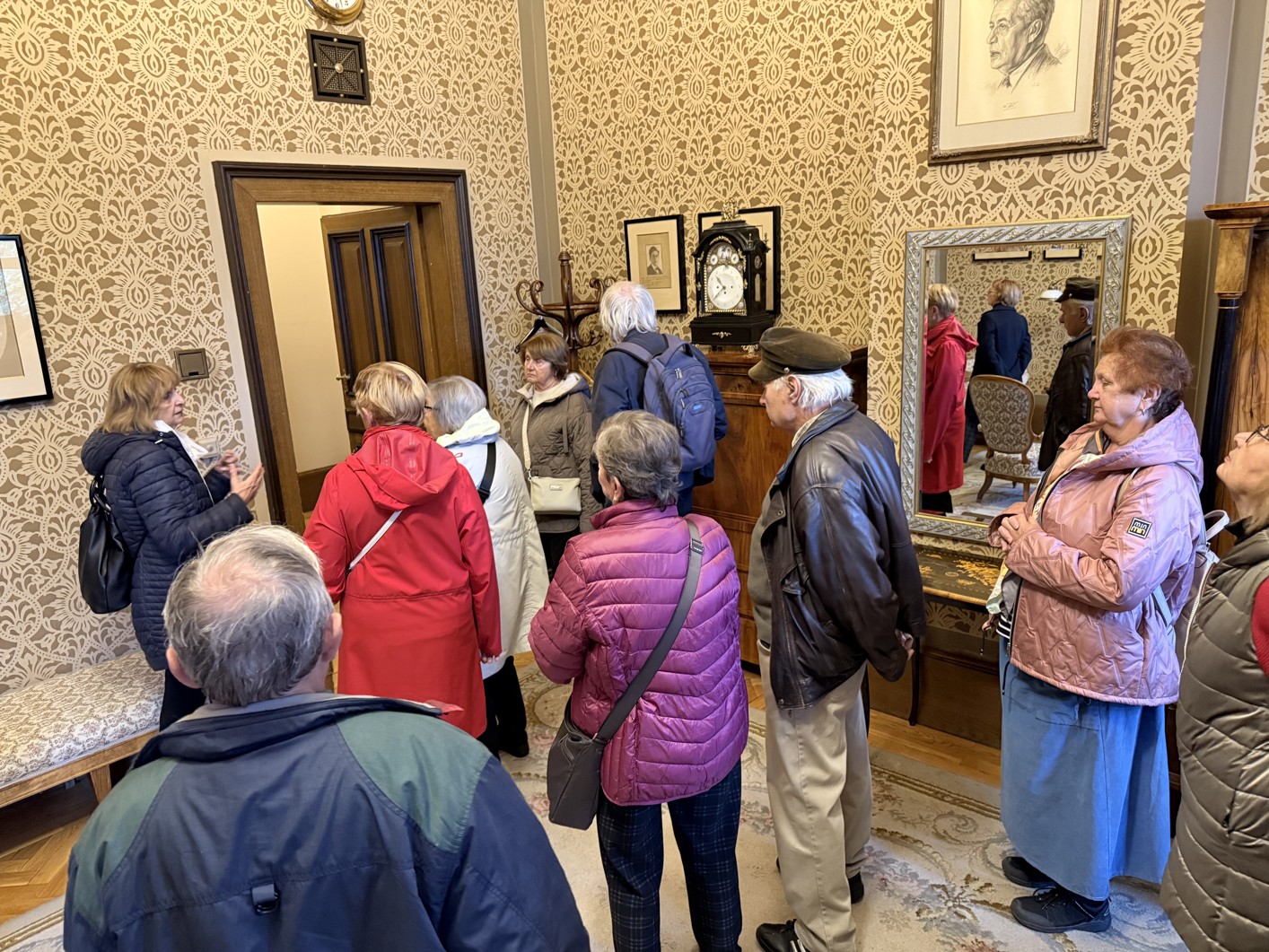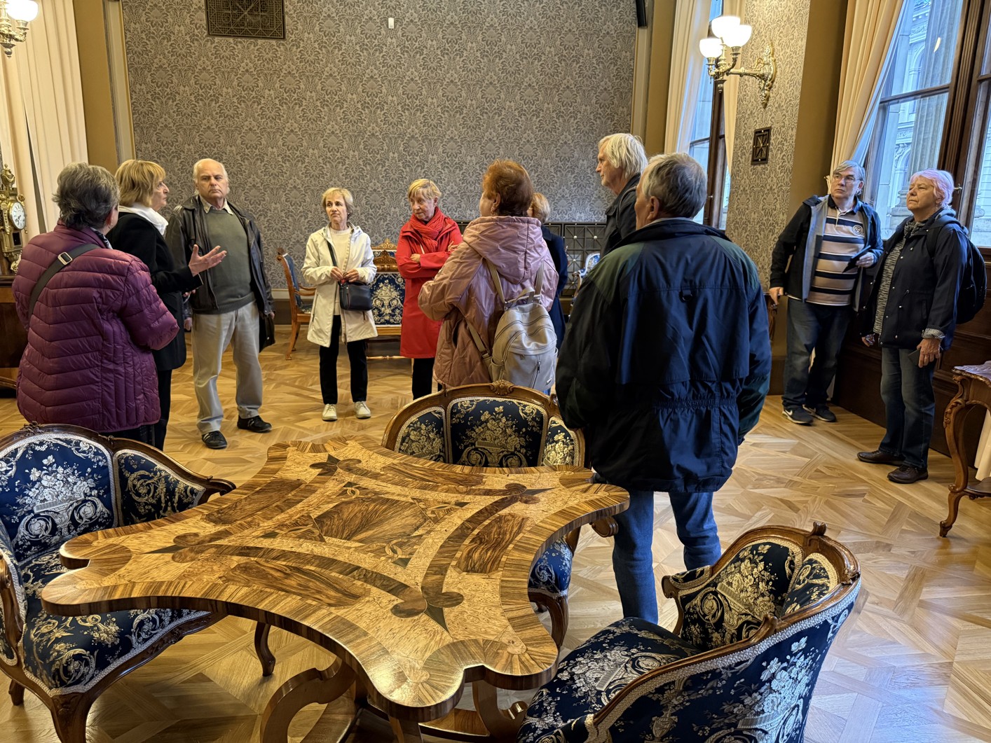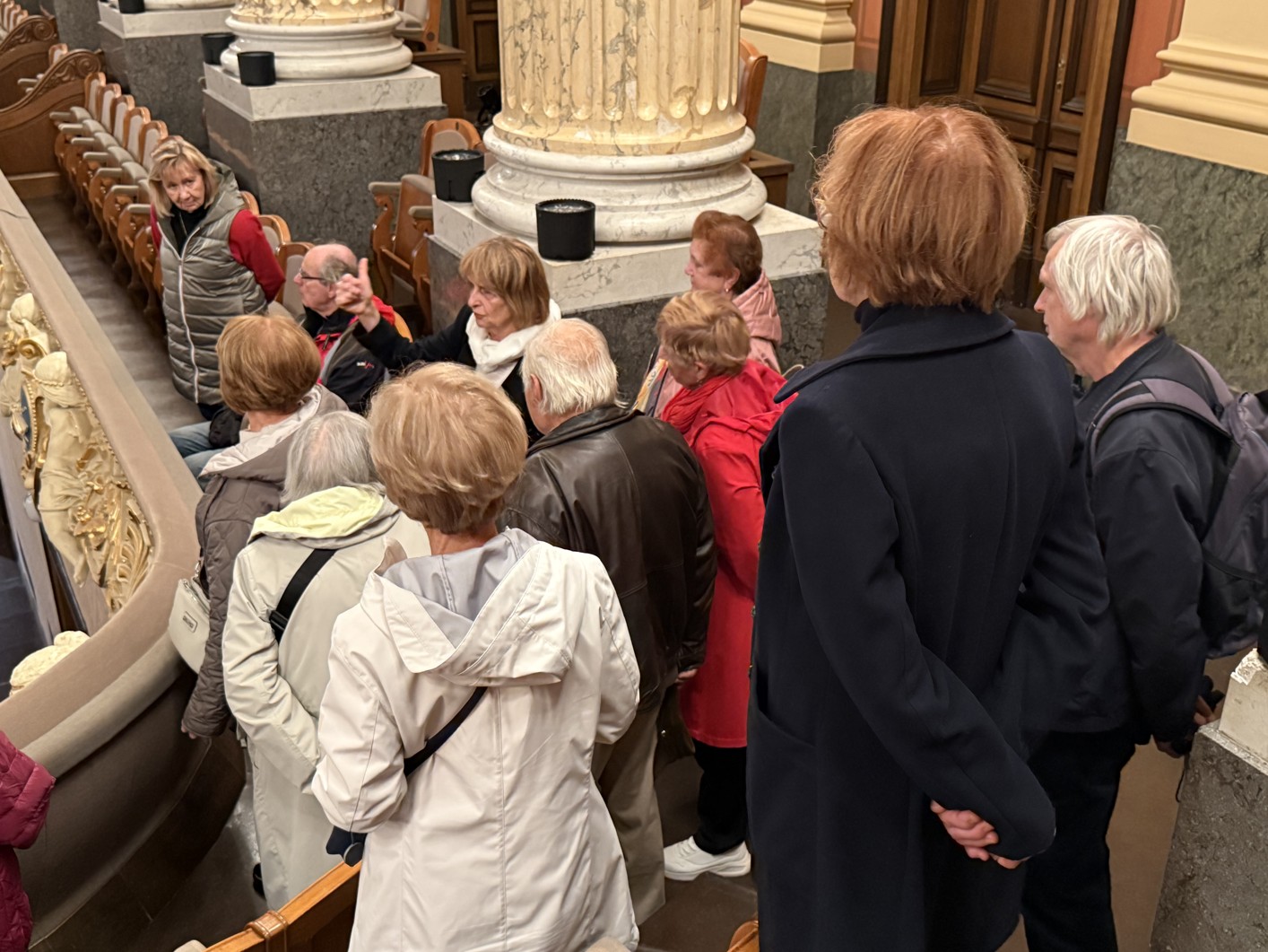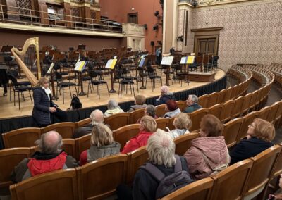 Třicet dva účastníků čítala říjnová výprava do Rudolfina, pražského sídla České filharmonie. Vzhledem k vysokému počtu jsme utvořili dvě skupiny a s průvodci absolvovali prohlídky Neumannova a Ančerlova salónku, Sukovy síně, zákulisí jeviště a hlediště Dvořákovy síně. Navštívili jsme prezidentův salonek vybavený krásným, čalouněným nábytkem, který v minulosti hostil i královnu Alžbětu II. nebo francouzského prezidenta Emmanuela Macrona, a prohlédli si prezidentskou lóži. Po skončení komentované části bylo možné navštívit i aktuální výstavy v Galerii Rudolfinum. Děkuji všem účastníkům za zájem a těším se na setkání při některé z vycházek v novém roce.