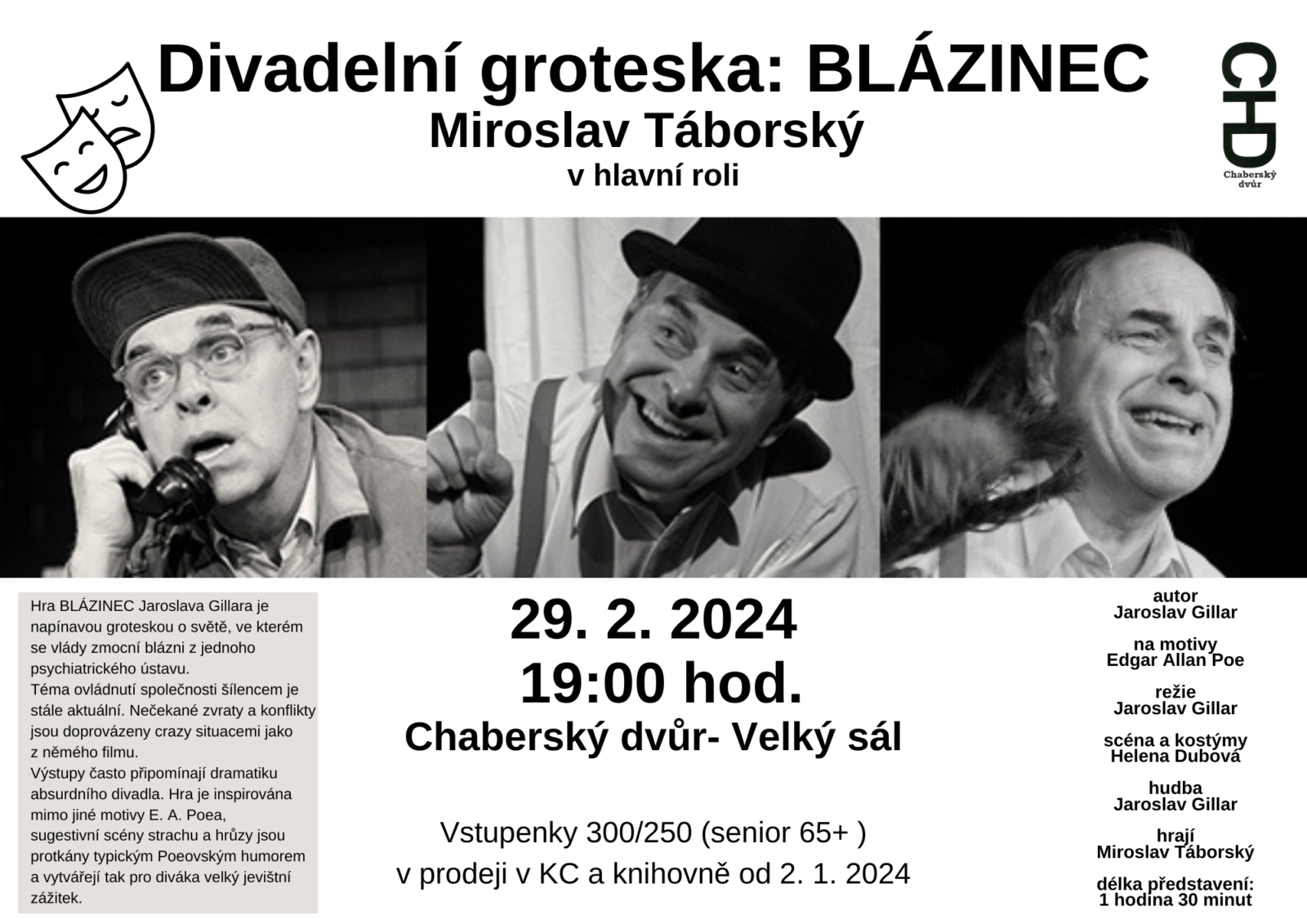 Kulturní centrum Chaberský dvůr vás zve na divadelní grotesku Blázinec.
