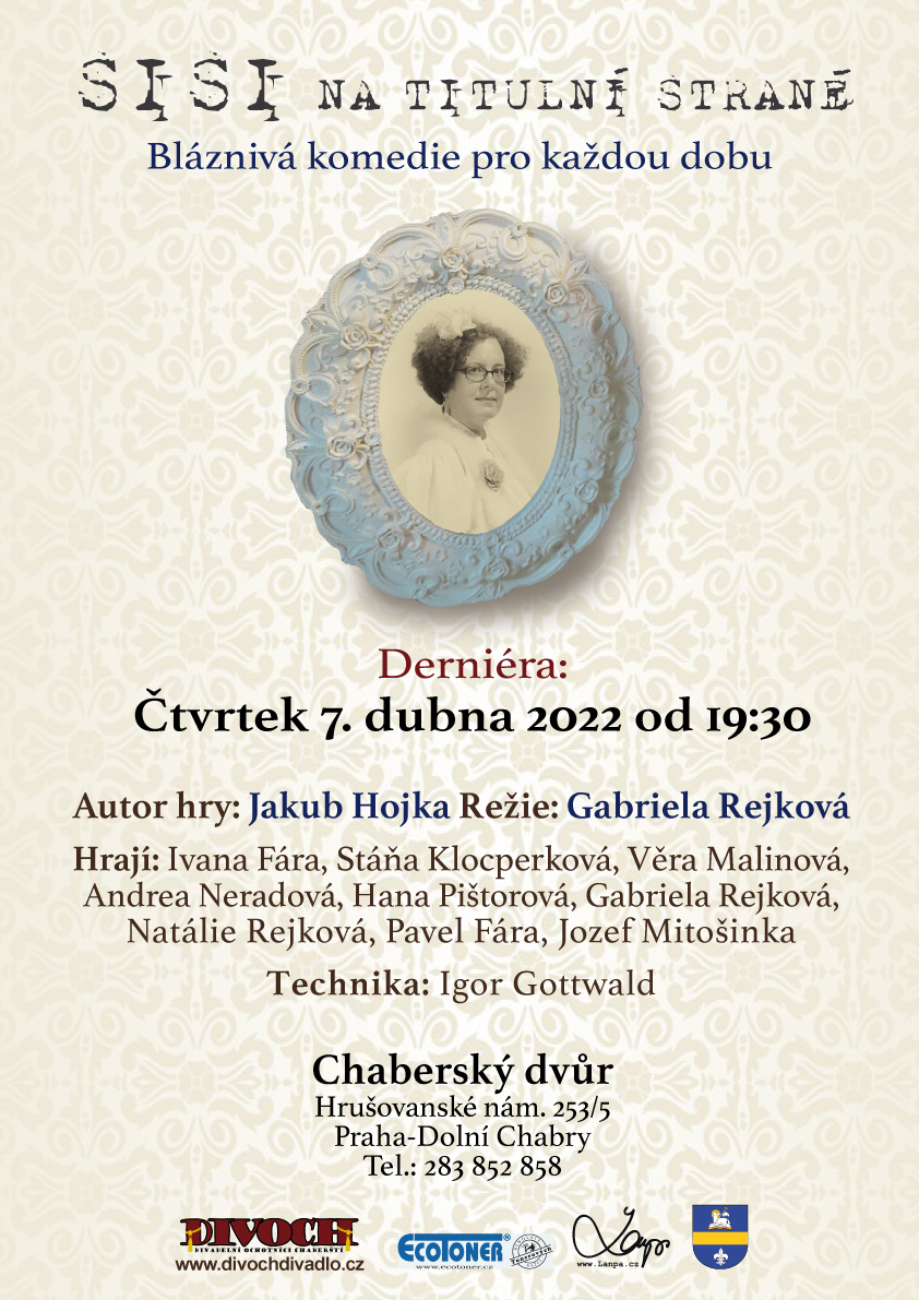 DIVOCH – divadelní ochotníci chaberští vás zvou na derniéru hry SISI NA TITULNI STRANE, která se bude konat ve čtvrtek 7. dubna 2022 od 19:30 v Chaberském dvoře.