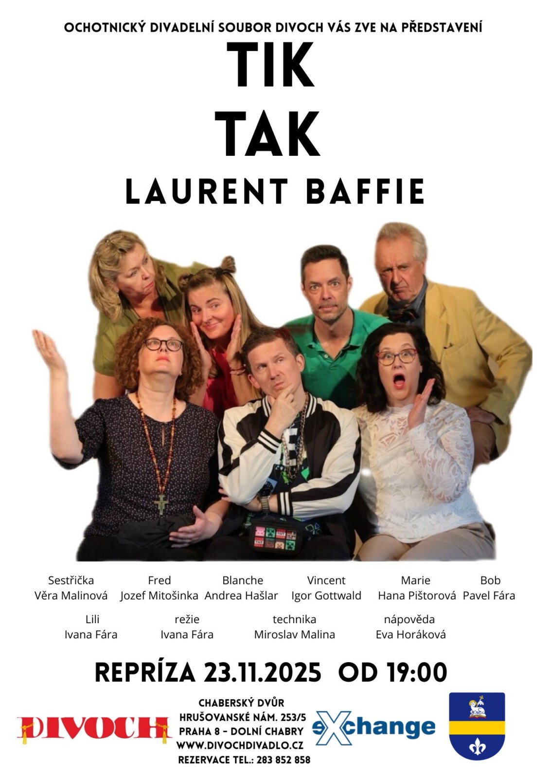 DIVOCH – Divadelní ochotníci chaberští si vás dovolují pozvat na reprízu hry z pera dramatika Laurenta Baffie s názvem TIK TAK.