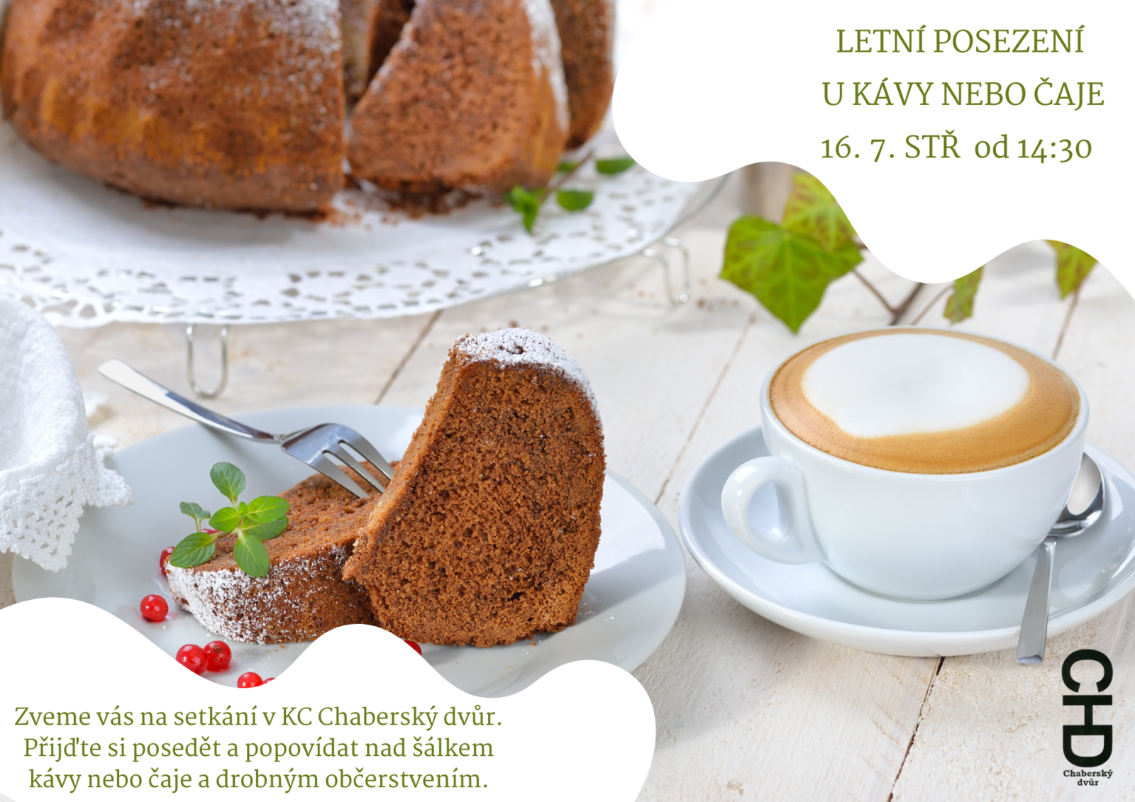 Zveme vás na letní setkání v Kulturním centru Chaberský dvůr. Přijďte si posedět a popovídat nad šálkem kávy nebo čaje a drobným občerstvením.